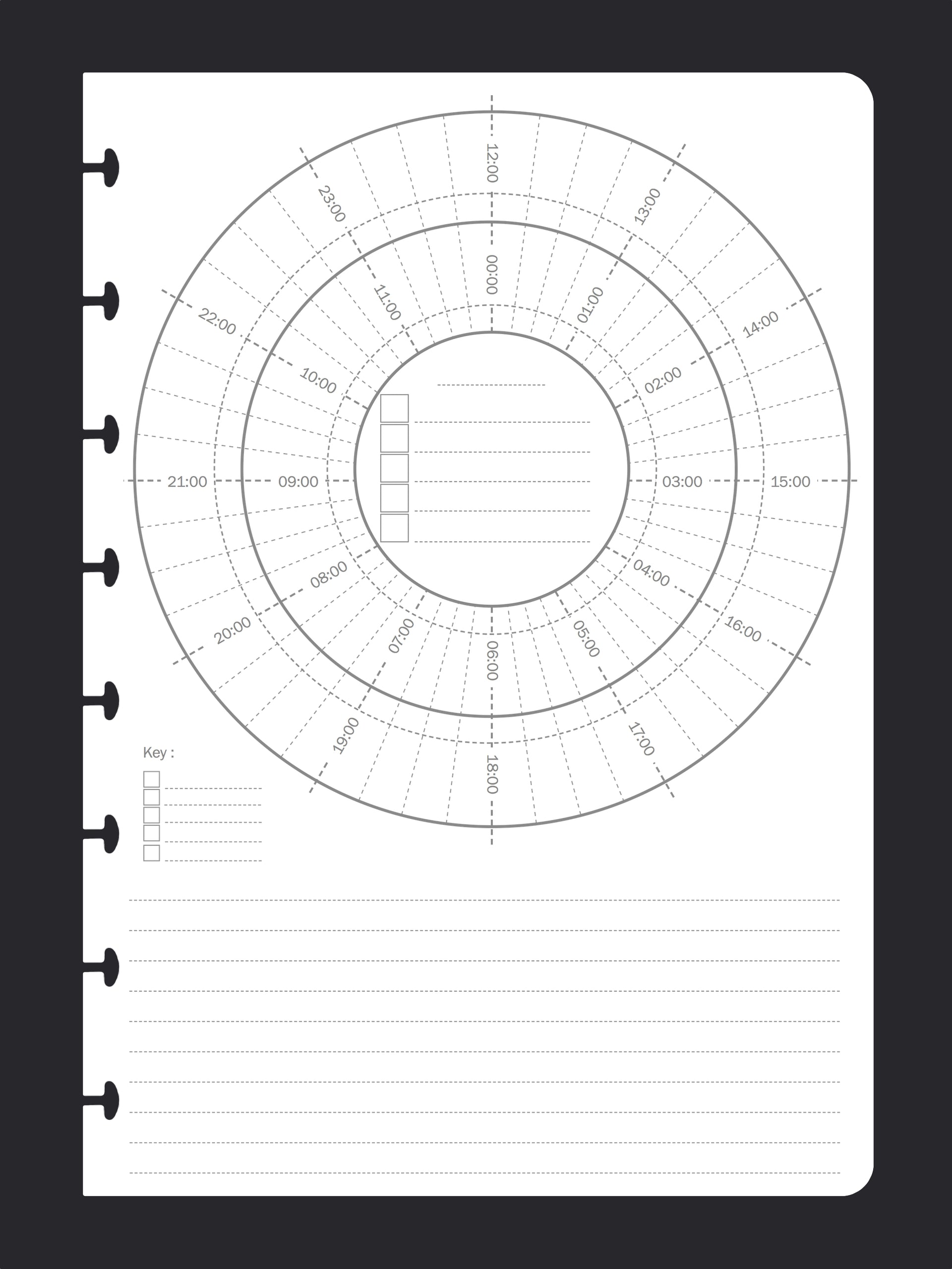 Designed to help you to understand exactly where all of that time goes, these 24 Hour Time Trackers have a unique layout which helps you to track 5 different categories of task and whether your time was well spent. The design also includes space to record today's date, your 5 critical tasks for the day, and still has space for other tasks and notes.