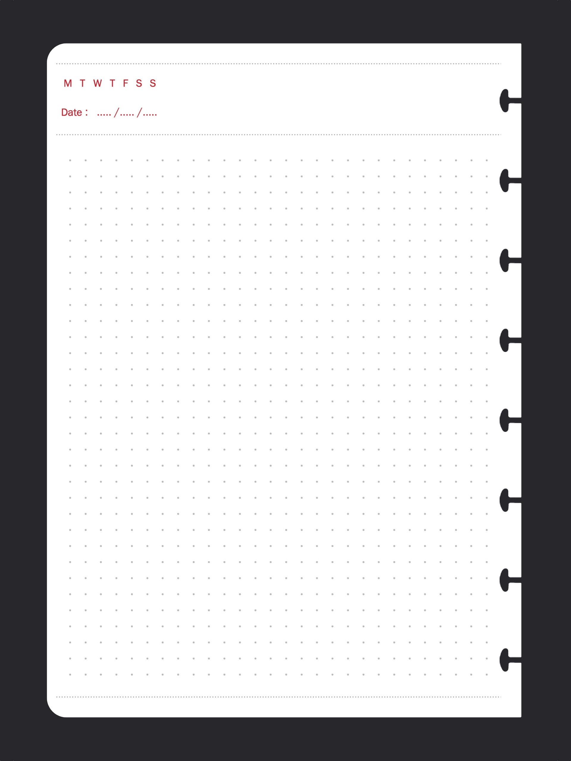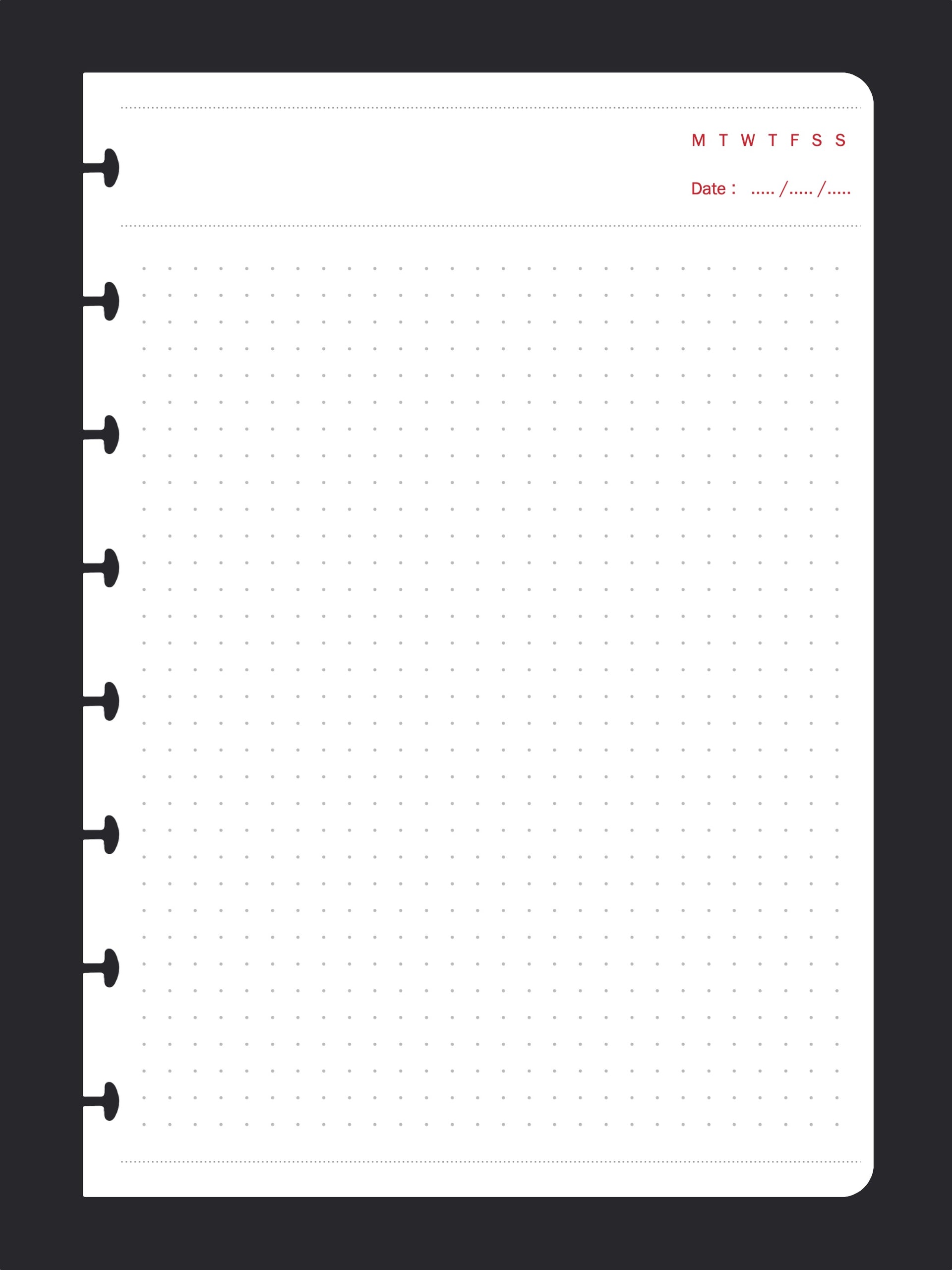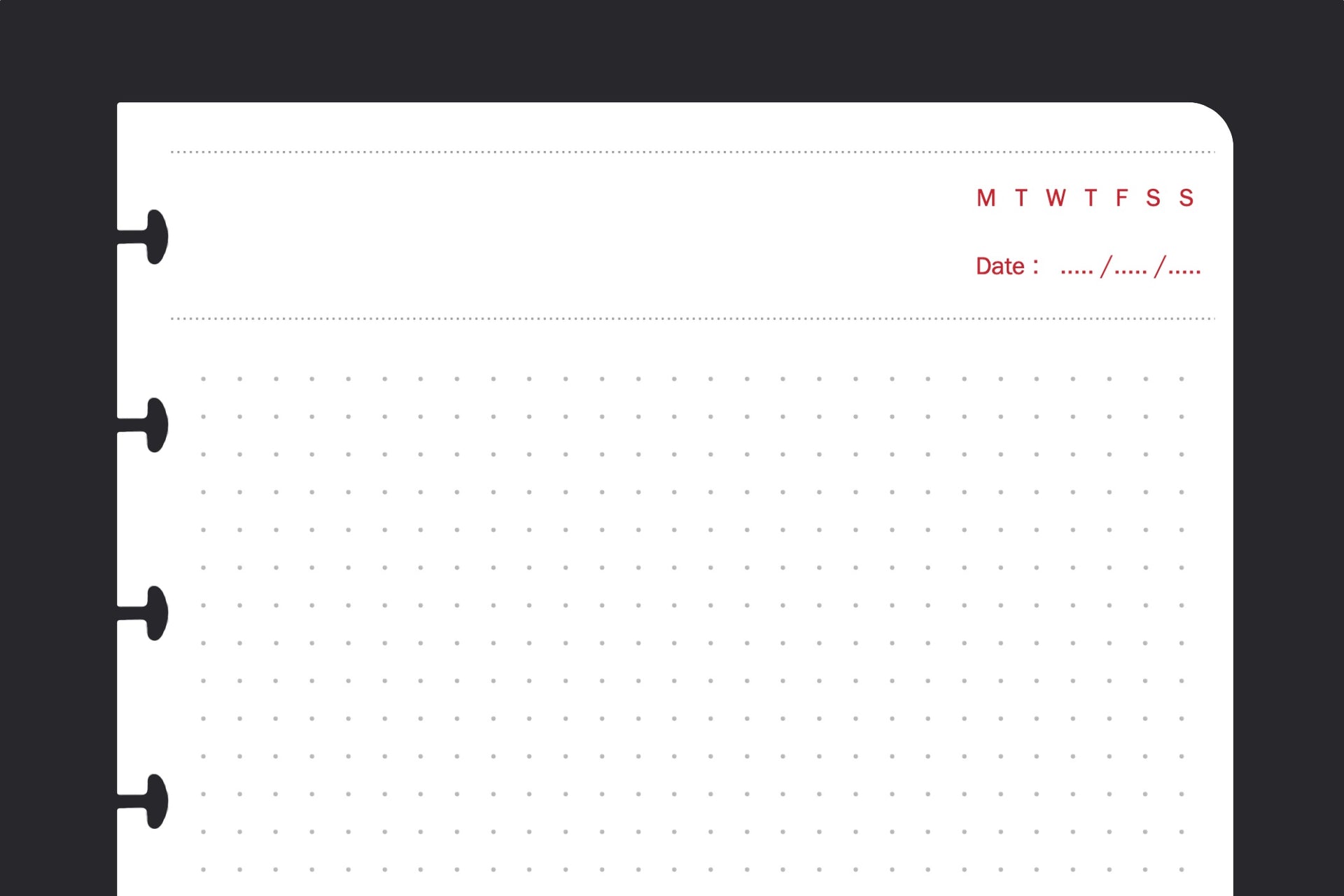 Designed to help you stay in control of your daily tasks, these ONE-day-to-a-page dated inserts have a blank section at the top for reminders of the day's meetings and goals, and the grey dot-grid section is great for listing the tasks that you need to do (or make notes about what you have already done !).