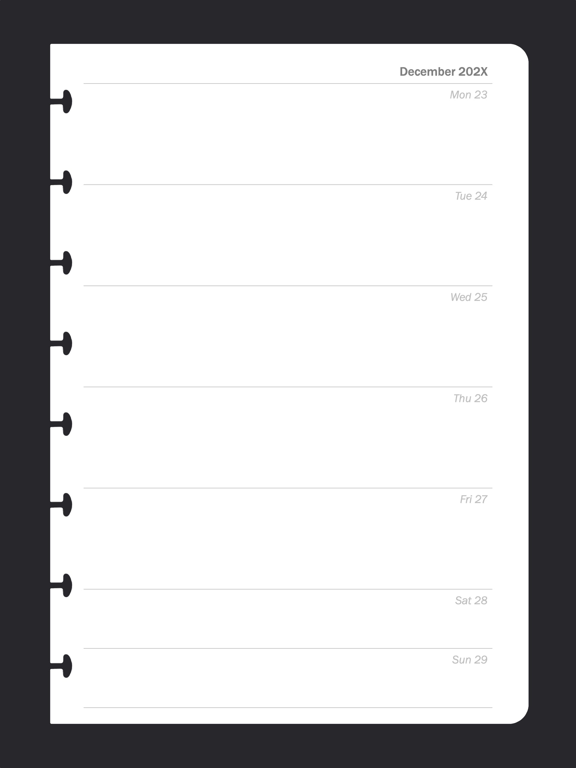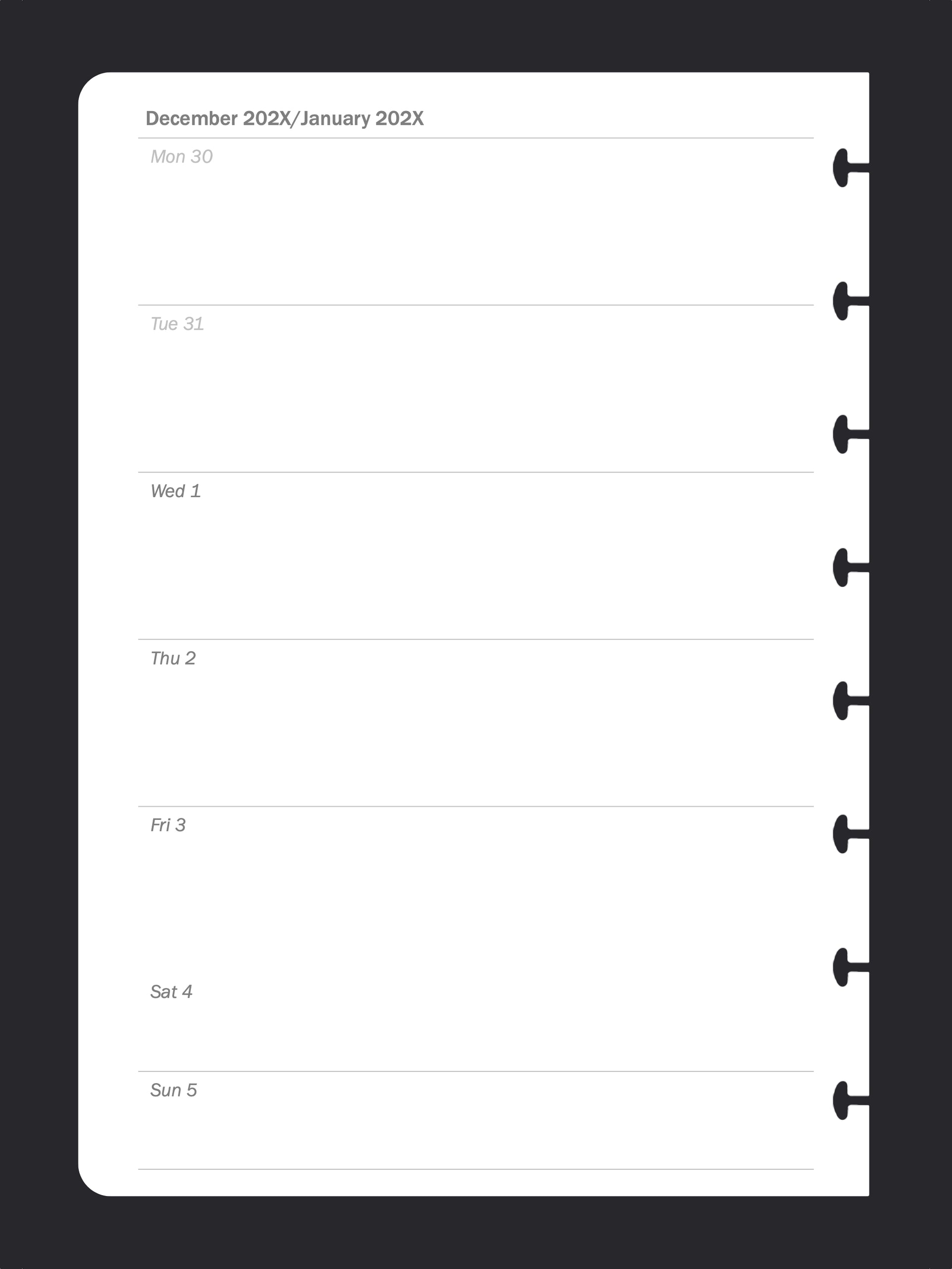 Week To Page Diary (A5, Dates Only)