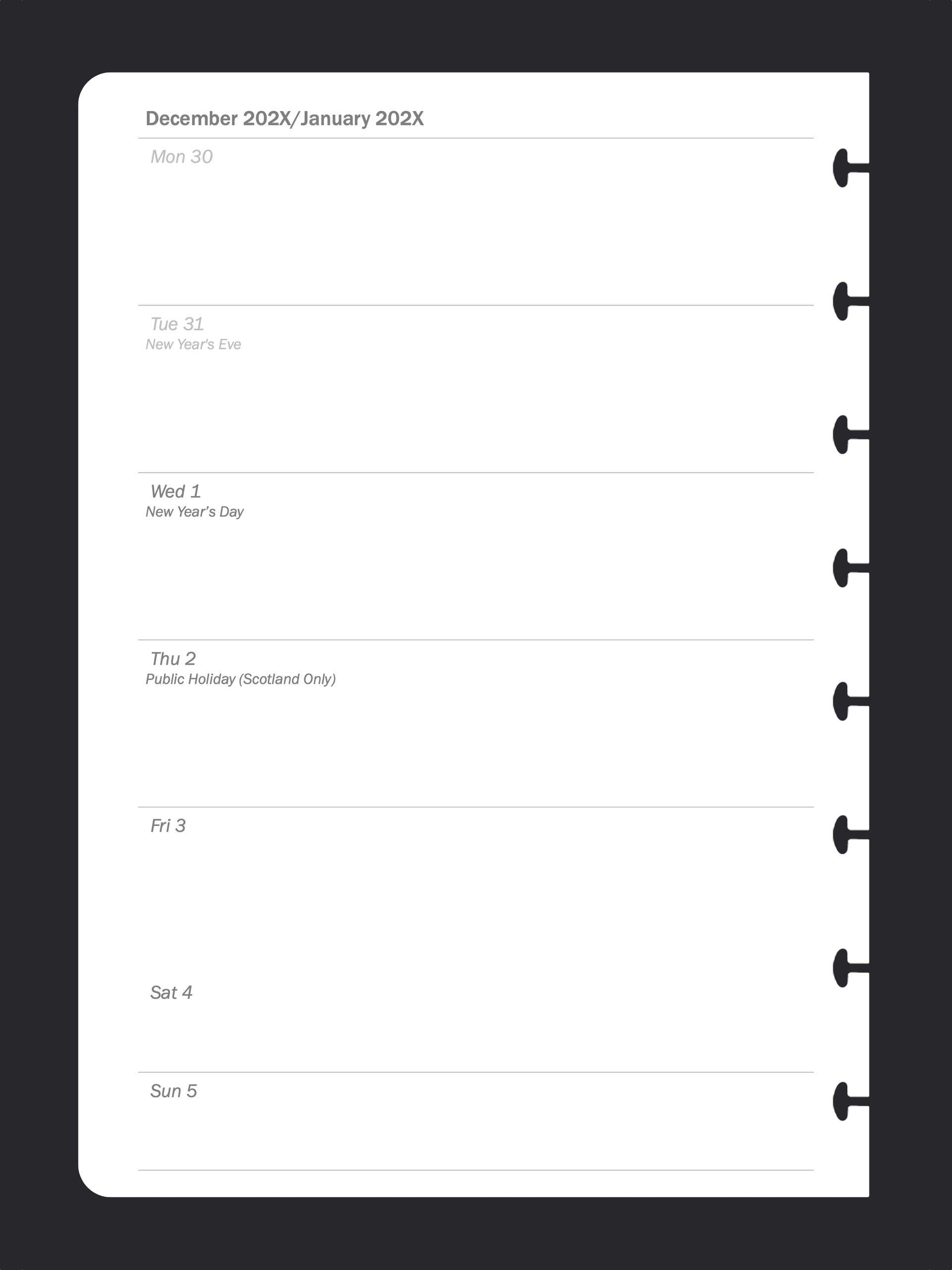 Our Week-to-a-Page Diary (UK Notable Dates) uses only 27 sheets of our luxury 115gsm paper, so you can still fill over half of your notebook with your favourite page types.