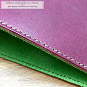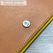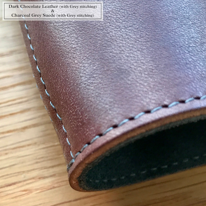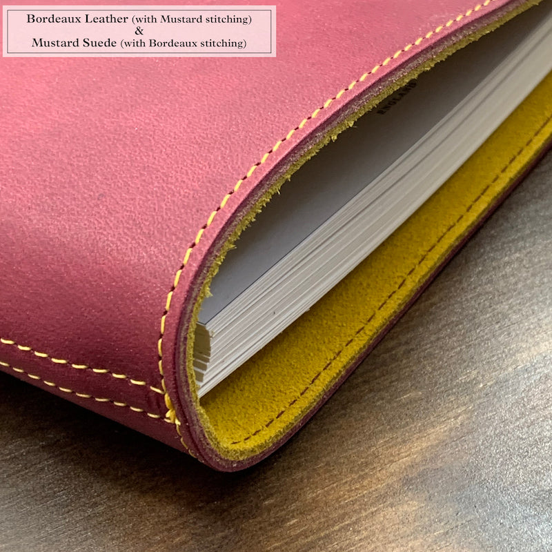Choose your favourite combination of outer leather and inner suede, tell us which colours you want to use for the stitching, and then decide if you want your initials debossed into the cover.