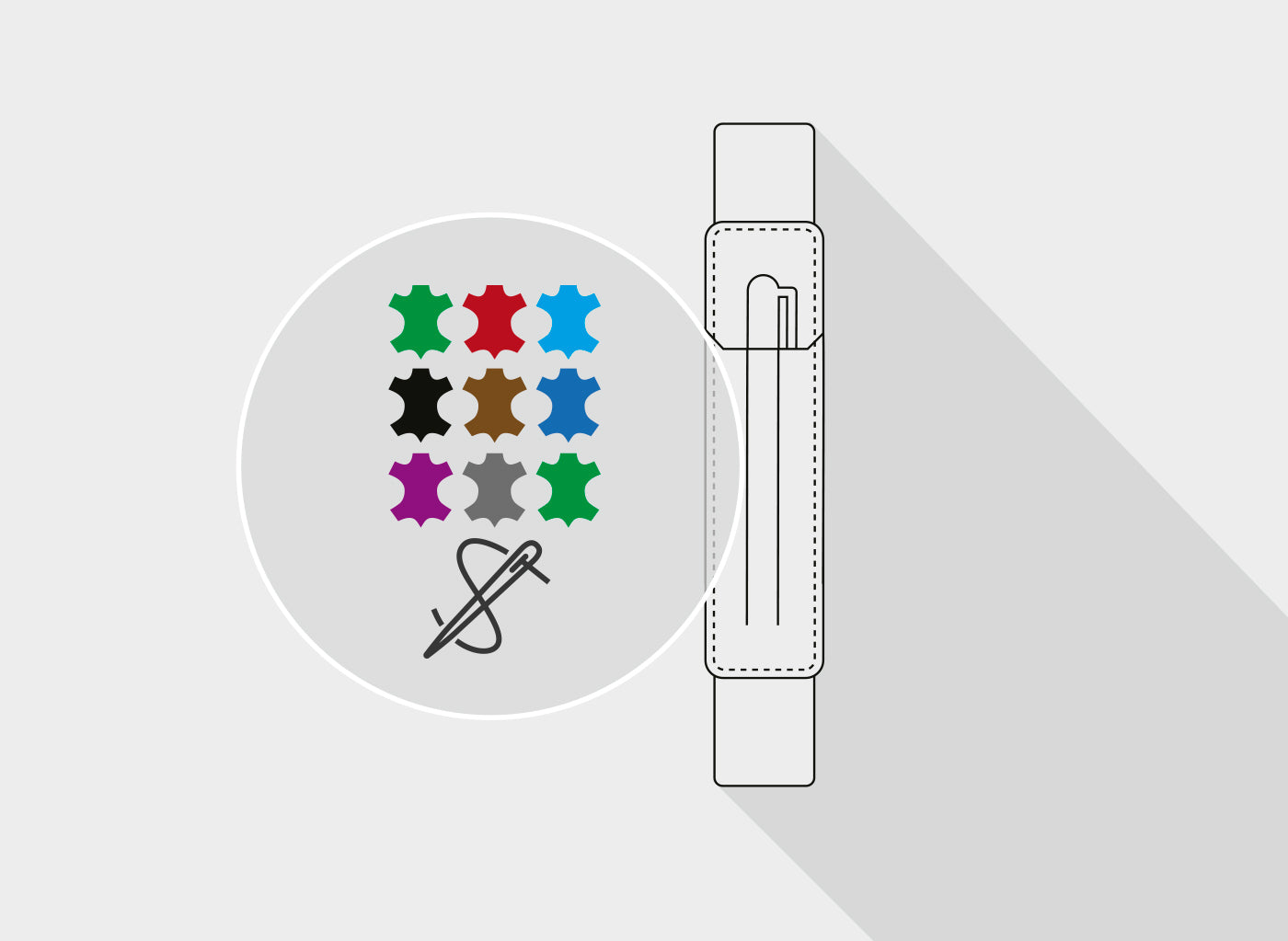 Choose the size of your William Hannah notebook, and then tell us the leather, suede, stitching and elastic colours for your bespoke Pen Band.